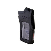 Funda de Nylon con lazo para cinto, capuchón auto-adherible para los botones, visor frontal de pantalla y teclado DTMF.