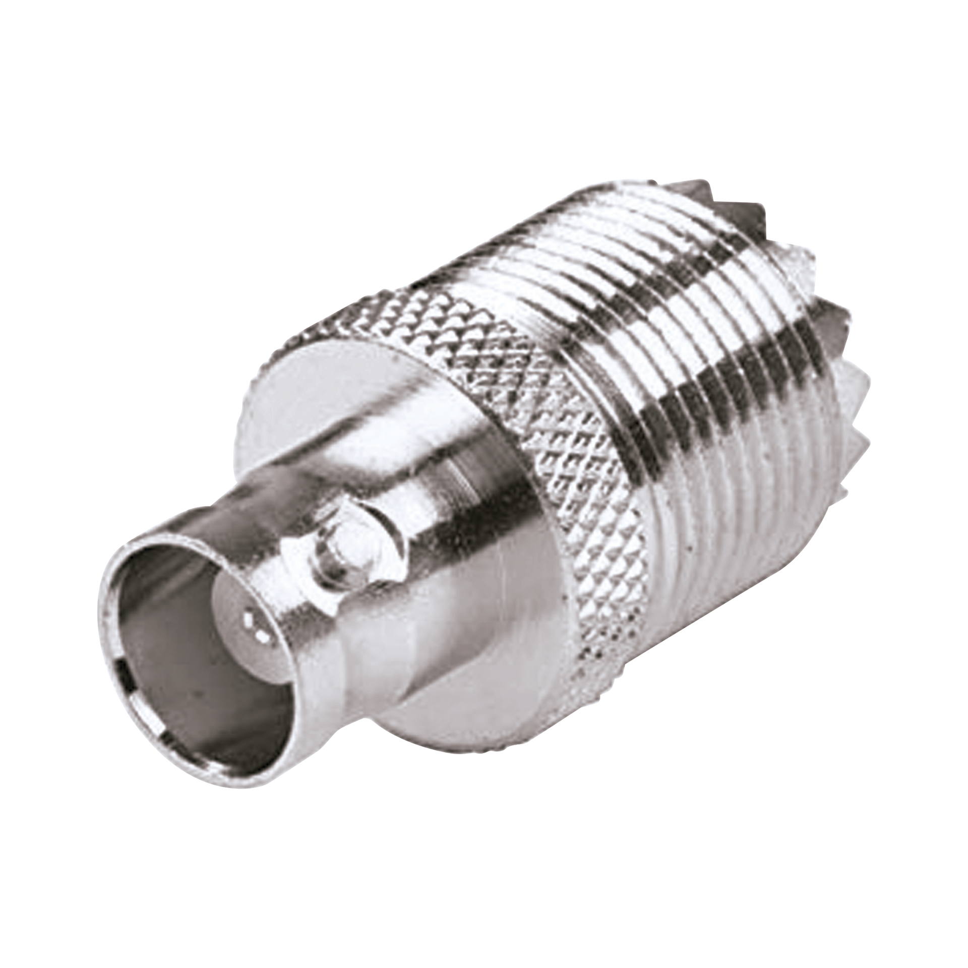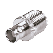 Adaptador UHF Hembra (SO-239) a BNC Hembra, Niquel, Plata, Delrin.