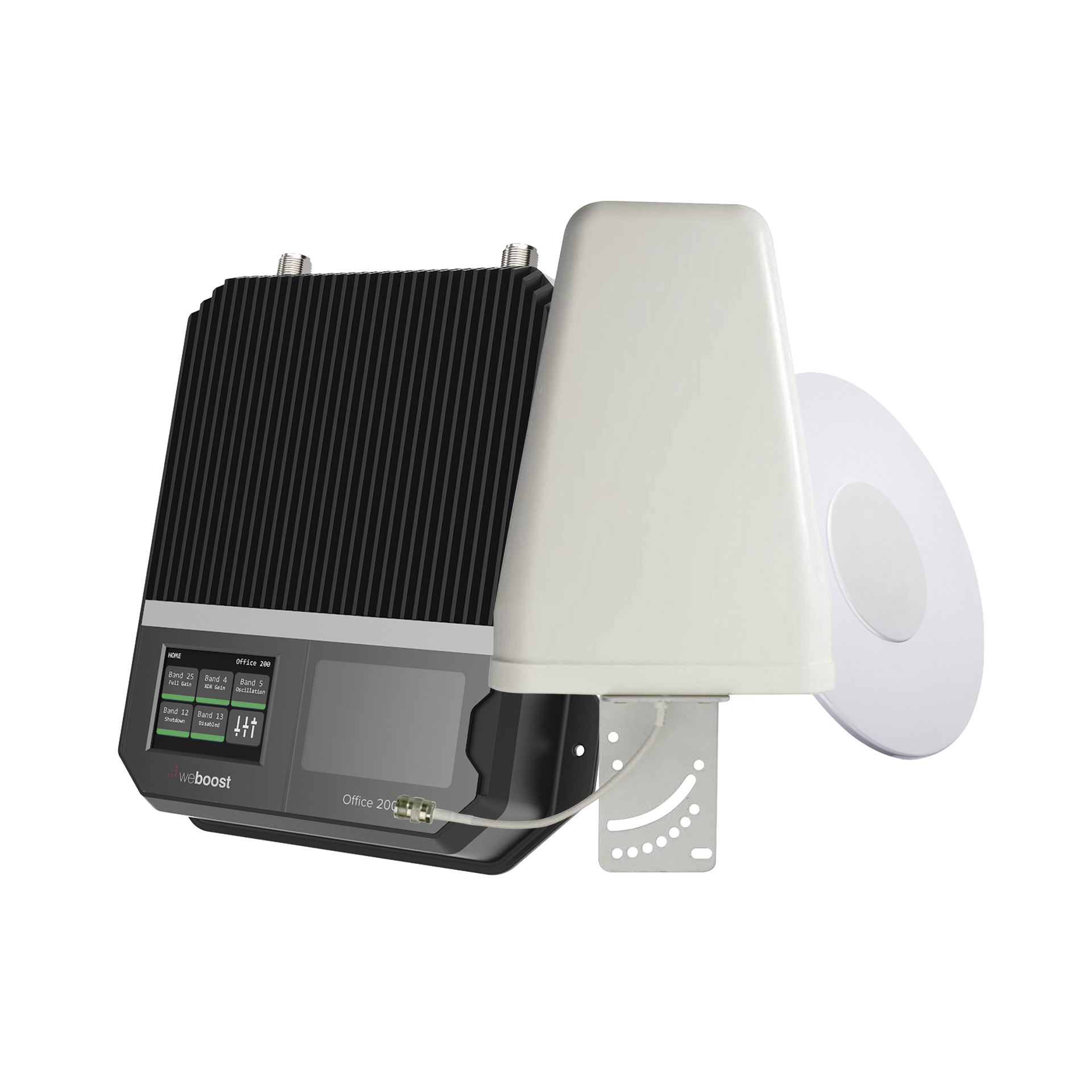 El Office 200 con antena exterior direccional de weBoost amplifica las señales débiles de celular para proporcionar una cobertura confiable de voz y datos, incluyendo 4G, dentro de los hogares y otros edificios donde las señales exteriores no llegan al interior. El Office 200 cuenta con un microprocesador de optimización automática y con un medidor de señal gráfico incorporado. La pantalla con indicador de nivel de señal Uplink y Downlink hace que sea fácil para el integrador o instalador determinar la dirección de la torre celular y la señal más fuerte disponible, lo que reduce considerablemente el tiempo de instalación.