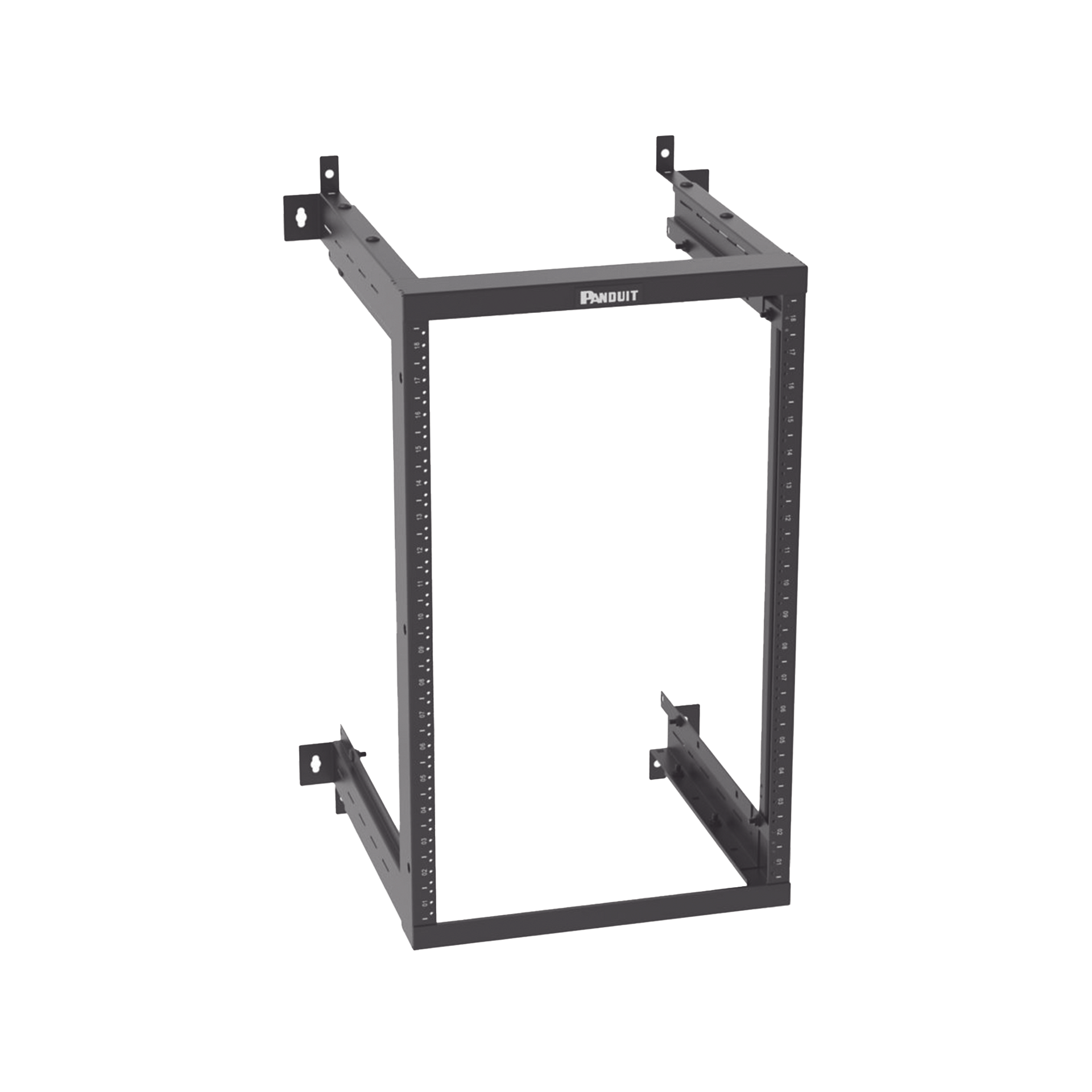 AWMR18 Rack PanZone® de Montaje en Pared, de 19in, Profundidad Ajustable, Rieles Numerados y Roscados #12-24, 18 UR, Color Negro