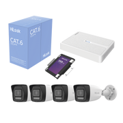 KIPH4B/SSD1TB Kit IP 2 Megapixel / NVR de 8 Canales con 8 Puertos PoE / 4 Cámaras IP Bala para Exterior / Micrófono Integrado / Bobina de Cable de 305 mts / SSD 1 TB
