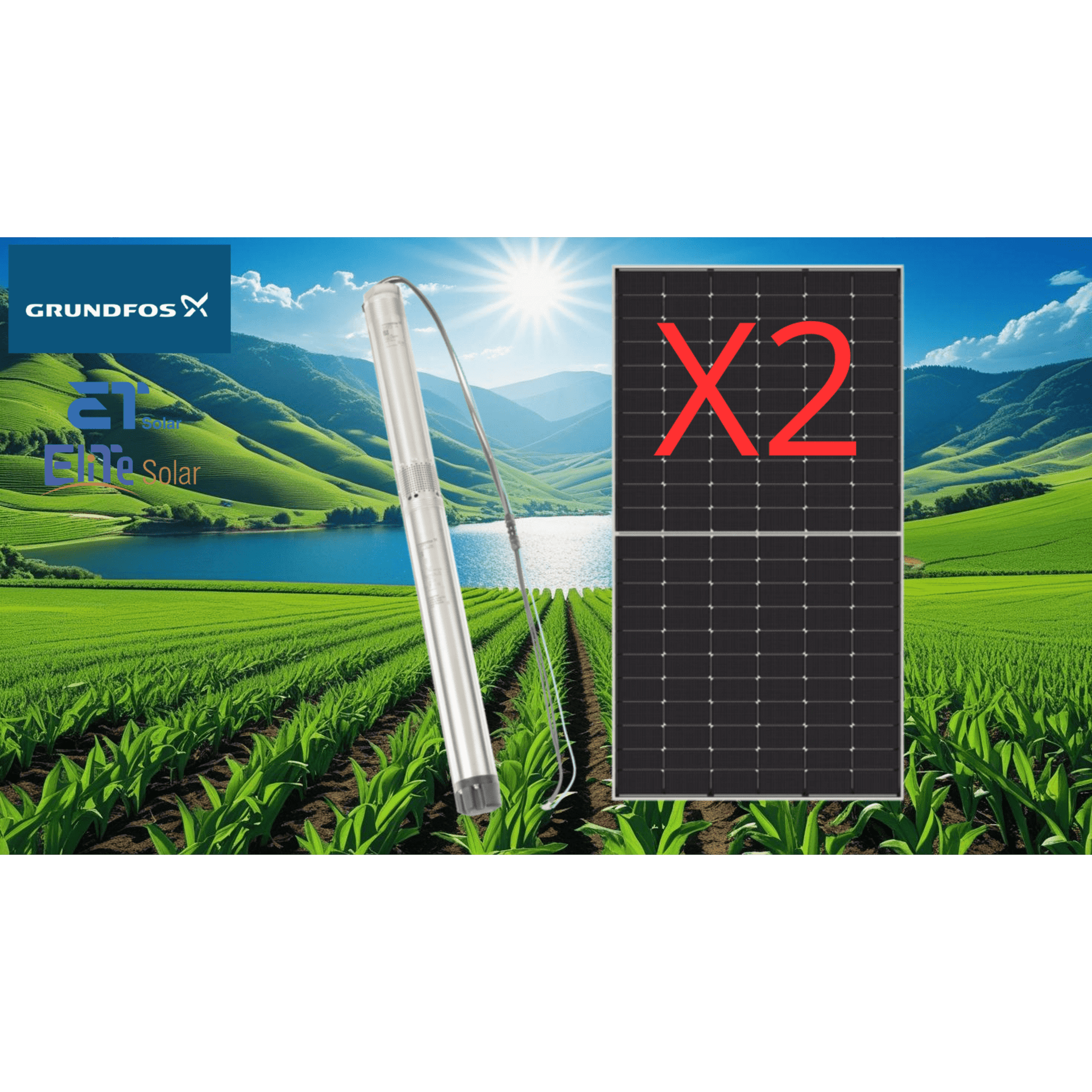 El kit de bombeo solar SQFLEX esta diseñado para el suministro de agua de pozos o fuentes de agua utilizando únicamente